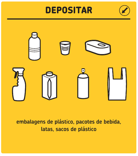 Não depositar: pilhas e baterias; tachos e panelas; canetas; talheres de plástico ou metal; DVD e CD; cassetes de vídeo; agrafos; caixa tipo tupperware; brinquedos; cápsulas de café; ferramentas; filme de plástico em rolo; isqueiro descartável.