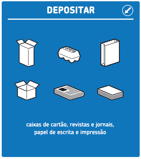Não depositar: papéis autocolantes ou plastificados; papéis sujos ou engordurados; toalhetes ou fraldas; papel de alumínio; papel químico ou vegetal; papel de cozinha ou guardanapos sujos; caixas de piza usadas (com gordura); embalagens de papel que tenham contido cimento ou produtos químicos