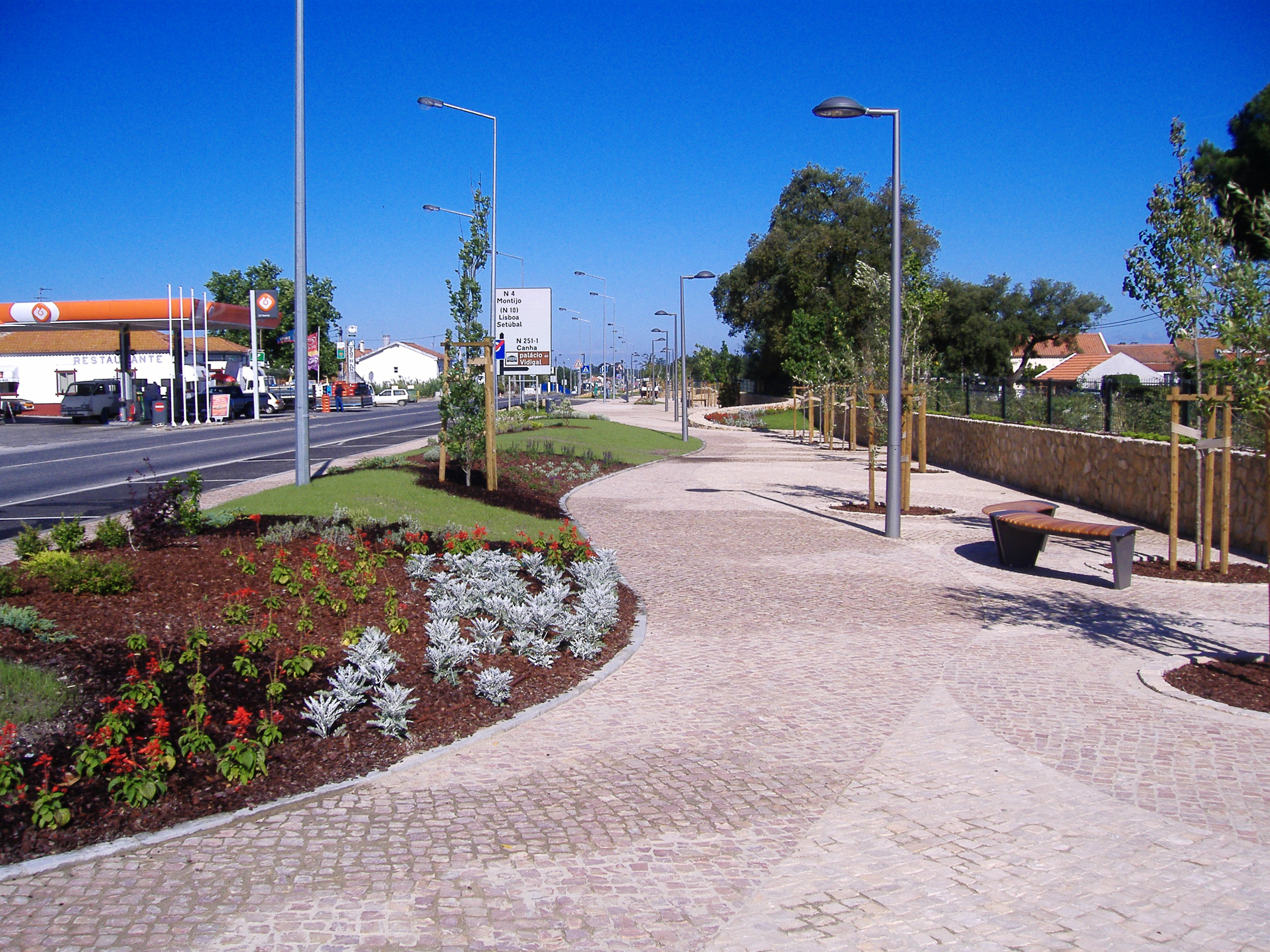 O quadro completa-se com a existência de um muro ondulante com canteiros incorporados de pedra calcária de cor amarela que chamam a atenção, relembram as cores da seara e nos fazem aproximar ao rural. Também o novo estacionamento de viaturas ao longo da estrada nacional e os semáforos que funcionam a painéis solares qualificam a zona e a circulação rodoviária. Assim sendo, verifica-se naquele espaço uma melhoria significativa na qualidade ambiental, aliando harmonia e enquadramento paisagístico, beneficiando essencialmente os moradores do local intervencionado e demais visitantes.